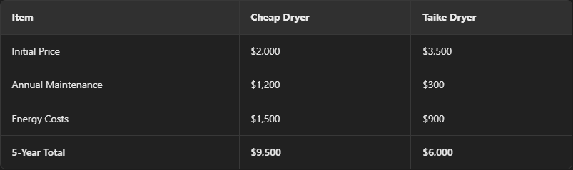 예산 건조기를 선택하려는 유혹이지만 숨겨진 비용은 빠르게 추가 될 수 있습니다. 다음은 조심해야 할 사항과 Taike의 제품이 더 똑똑한 투자 인 이유. 저비용 건조기의 위험